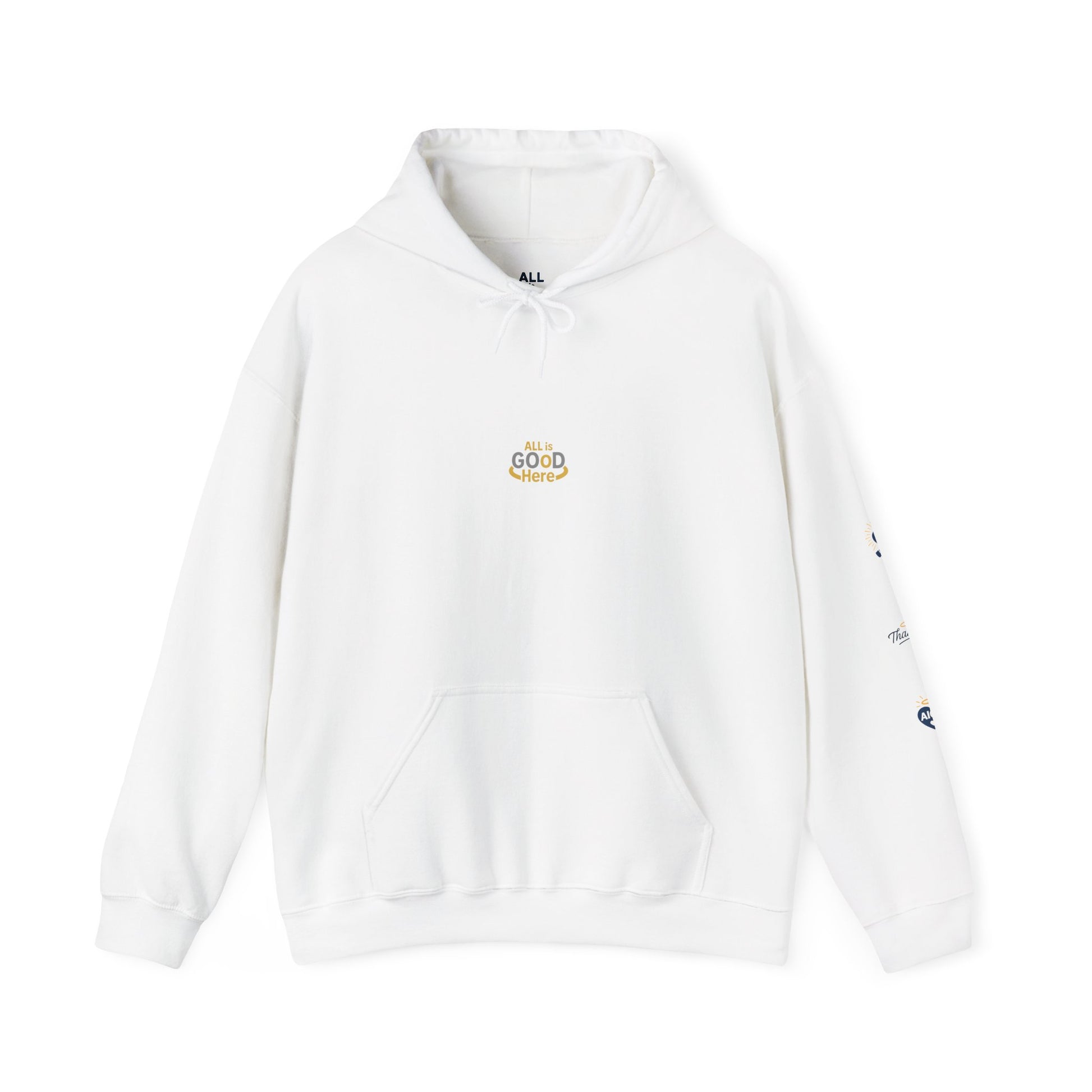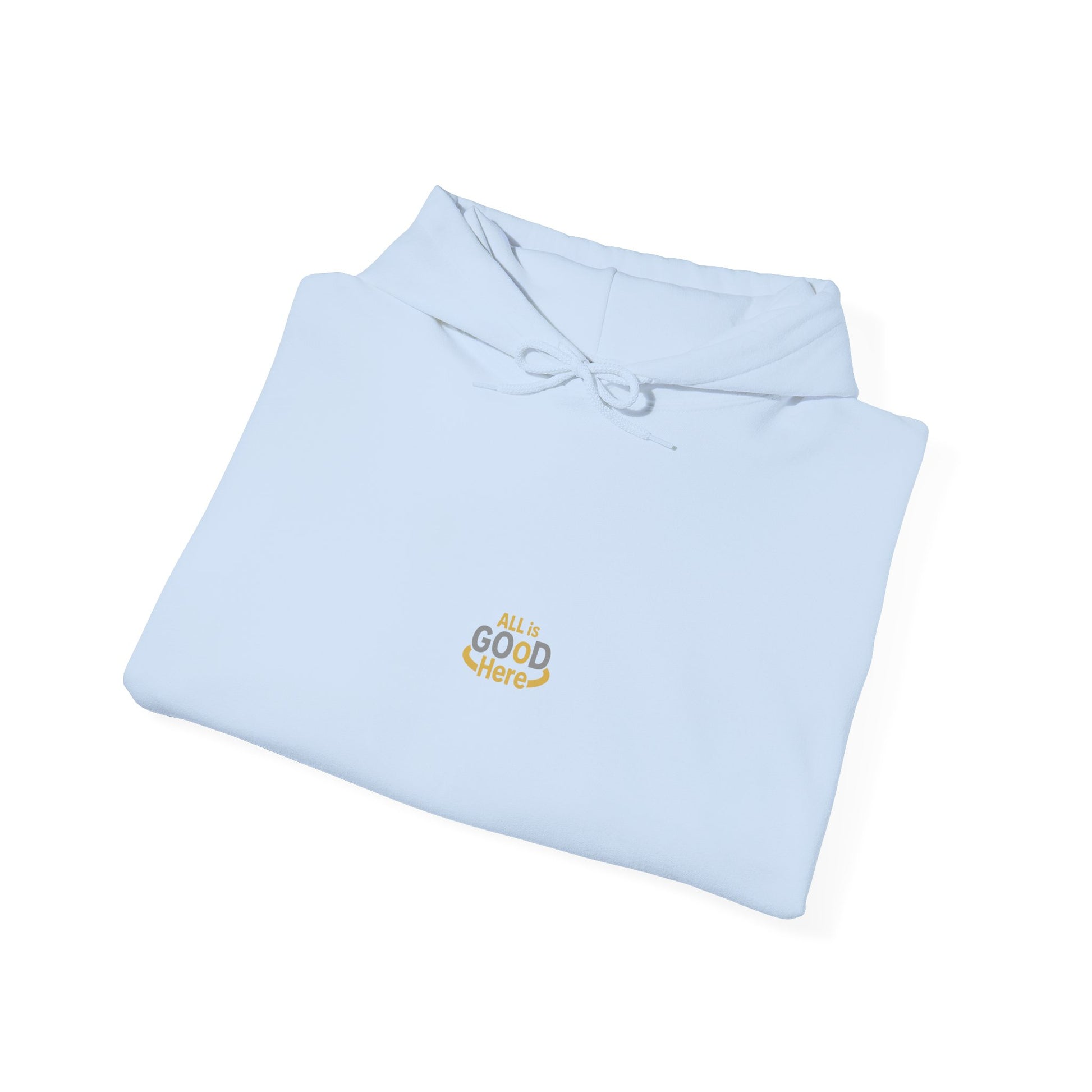 All is GOoD Here Unisex Hooded Sweatshirt w/sleeve print - Cozy and Positive Vibes
